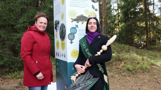 Anlässlich des Abfischfestes wurde auch von der Vizepräsidentin der NÖ Landes-Landwirtschaftskammer Andrea Wagner und NÖ Karpfenkönigin Luna I. die innovative Spiel- und Informationstafel am Standort des Bruneiteiches feierlich eröffnet und enthüllt. Nach der Einweihung dieses Infopoints mit dem Karpfenzepter durch die Karpfenkönigin wurden noch Grußworte der Landeshauptfrau Johanna Mikl-Leitner durch die Landtagsabgeordnete Margit Göll überbracht. Der NÖ Teichwirteverband bedankte sich auch bei der Stadtgemeinde Heidenreichstein, allen voran Bürgermeister Gerhard Kirchmaier und Vizebürgermeisterin Margit Weikartschläger, für die Zurverfügungstellung von Gemeindegrund für die Errichtung und die Unterstützung beim Genehmigungsprozess für die Informationstafel. Nun können sich Interessierte während des ganzen Jahres über die Teichwirtschaft, die Karpfenkulinarik und die Besonderheiten des Bruneiteiches, z.B. dass dieser seit 1979 auch ein verordnetes Naturschutzgebiet darstellt, informieren.
