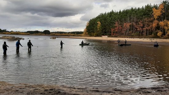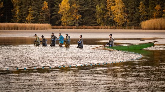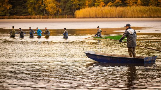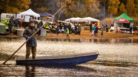 „Es liegt so eine ganz eigene Stimmung über den morgendlichen Teichen des Waldviertels im Herbst, sind doch viele bis auf einen kleinen Wasserrest, der Fischgrube, gänzlich ausgelassen und warten dem großen Finale des Teichabfischens entgegen. Es ist eine Mischung aus anfänglicher Ruhe gepaart mit kaum zu bändigender Spannung. Vor dem ersten Fischzug mit den großen Zugnetzen ist die Fischernte noch unbekannt. Es gibt nur Hoffnungen, denn zählen kann man die Fische zu diesem Zeitpunkt noch nicht. Alle Blicke richten sich erwartungsvoll auf die noch glatte Wasseroberfläche der Fischgrube. Doch dann, wenn die Zugnetze das erste Mal eingezogen werden, entlädt sich förmlich diese Anspannung und es kommt zum sogenannten `Kochen des Teiches`. Dabei spritzt das Wasser durch die Bewegungen der Fische in alle Himmelsrichtungen. Zug um Zug bekommt man mehr Gewissheit, wie der Fischertrag ausgefallen ist“, beschreibt Leo Kirchmaier, Aquakulturreferent der NÖ Landes-Landwirtschaftskammer bei seinem Vortrag „Waldviertler Teichwirtschaft – von Tradition bis Innovation“ das Abfischen der Waldviertler Teiche beim großen Waldviertler Abfischfest am Bruneiteich bei Heidenreichstein.