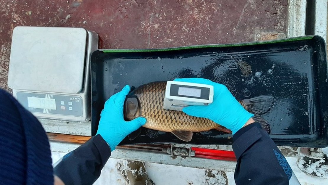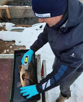 Fischereimeister Günther Gratzl vom Bundesamt für Wasserwirtschaft – Ökologische Station Waldviertel hat mittels eines Sensors, von außen am lebenden Karpfen, zerstörungsfrei und ohne Nachteile für den Fisch, an mehreren Stellen des Filets gemessen. „Dabei wird eigentlich der Wassergehalt bestimmt und mittels Eichkurve umgerechnet. Die Messung bietet zudem den Vorteil, dass sie sehr rasch am Teich erledigt werden kann und die Fische dabei nicht geschlachtet werden müssen“, erklärt der ausgewiesene Fachmann die Vorteile für eine qualitätsorientierte Produktion. Pro Betrieb bzw. Teich wurden immer 10 Fische gemessen, um eine entsprechende Aussagekraft zu erhalten. Die Daten des Ringversuches werden demnächst auch in einer Fachzeitschrift publiziert.