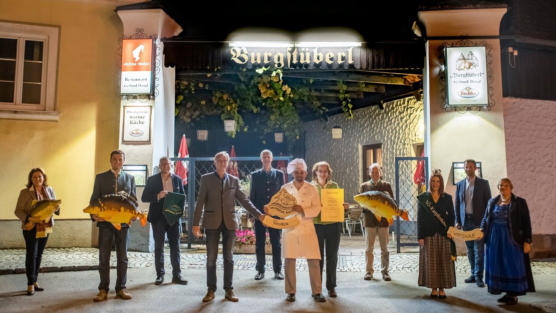Auf Initiative von Karpfenlieferant Karl Schmalzbauer von der Teichwirtschaft Teichleben wurde auf Basis der internen Richtlinien im NÖ Teichwirteverband überprüft, ob das Burgstüberl die Kriterien für die Auszeichnung als Karpfen-Hauben-Restaurant erüllt. „Gerhard Dangl zeigt mit seiner außerordentlich umfangreichen Speisekarte sehr eindrucksvoll wie vielfältig die Zubereitung der Waldviertler Karpfen sein kann, vor allem die zusätzlichen Schwerpunktaktionen wie die herbstlichen Karpfenwochen sprechen für sich“, freut sich Andreas Kainz, Obmann-Stellvertreter des NÖ Teichwirteverbandes, über den frisch gebackenen Haubenträger.