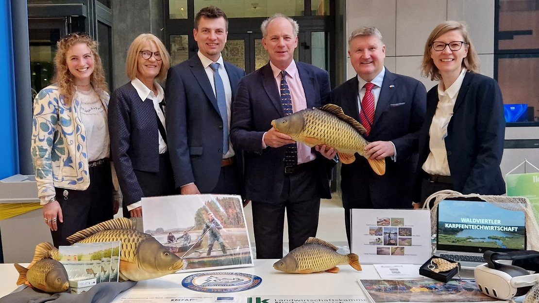 Im Anschluss an den offiziellen Festakt folgten eine Ausstellung, kulturelle Darbietungen samt Modenschau sowie eine Produktverkostung. Der NÖ Teichwirteverband machte dabei mit einer VR-Brille das traditionelle Abfischen in Rom hautnah erlebbar. Bei der Modenschau wurden die Wathosen – die typische Arbeitskleidung der Waldviertler Karpfenteichwirt:innen – in Szene gesetzt und bei der Produktverkostung begeisterten Karpfenkaviar und Räucherkarpfen-Häppchen das internationale Publikum.