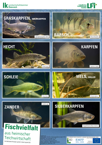 Beigelegt wird der Broschüre ein grafisch sehr ansprechendes Poster im A2 Format mit Unterwasser-Bildern der üblicherweise in Österreich vermarkteten Fische in der Teichwirtschaft. Jeder Fisch des Posters wird sowohl mit seiner Handelsbezeichnung als auch mit seinem wissenschaftlichen Namen gekennzeichnet. Damit wird zum einem dem Gesetz der verpflichtenden Verbraucherinformation genüge getan und zum anderen stellt das Poster für die Konsumenten einen Blickfang dar.