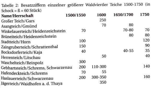 - Im Waldviertel (Oberes Waldviertel) begann die Teichwirtschaft früher als im benachbarten Südböhmen (Macho, 2017).