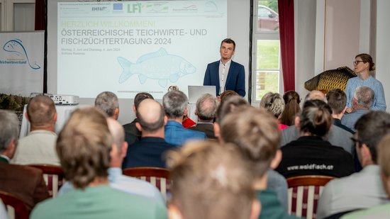 Den krönenden Abschluss machten Marlis Haas von der Teichwirtschaft Saaz in der Steiermark und Amelie Seilern-Aspang vom Schloss Litschau im Waldviertel zum Themenblock Vermarktung in der Karpfenteichwirtschaft. Die innovativen Vermarktungsstrategien beider Vortragenden sind am Puls der Zeit und dienen jetzt schon als großer Wegweiser für das zukünftige Marketing in der Teichwirtschaft. Anschließend brachten Statements der Branchenvertreter des NÖ Teichwirteverbandes, mit großem Applaus die gelungene Tagung auf den Punkt: „Das hohe fachliche und wissenschaftliche Niveau sowie die positive und engagierte Arbeit in der Branche gemeinsam mit der Landwirtschaftskammer NÖ ist bemerkenswert. All das macht diese Teichwirtetagung mit Abstand zur Besten seit es den Verband gibt.“ Zum Abschluss betonte Obmann Ferdinand Trauttmannsdorff noch einmal die Wichtigkeit des Zusammenhalts untereinander und des fachlichen Austausches in Zeiten der Veränderung: „Klimaanpassungsstrategien in der Teichwirtschaft sind wichtiger denn je und dabei muss es gelingen, Innovation, Wissenschaft und Praxis zu vereinen und diese Disziplinen in ein Boot zu holen“.