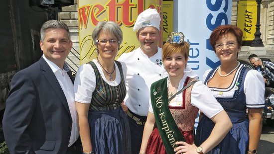 NÖ Karpfenkönigin Luna I. und Altkönigin Eveline überzeugten Politiker und Botschafter des Waldviertels von den Vorzügen des Karpfens.