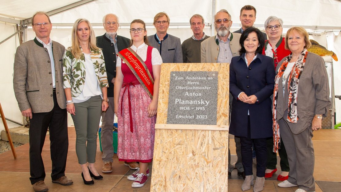 Von 07. bis 08. Oktober 2023 fand am Stadtplatz in Heidenreichstein das zweite BURG.STADT.FEST mit traditionellem Fischmarkt statt. Am Samstag, 07.10., wurde zu Ehren von Oberfischmeister Anton Planansky (1908-1995, langjähriger Leiter der Teichwirtschaft Heidenreichstein unter Fürst Palffy, Graf Van der Straten und Graf Kinsky) durch die NÖ Karpfenprinzessin Michaela Altmann eine Gedenktafel feierlich enthüllt. Die Idee für die Gedenktafel stammt von Karlheinz Piringer, Obmann der Agrargemeinschaft Heidenreichstein. Gemeinsam mit dem NÖ Teichwirteverband wurde zur feierlichen Enthüllung der Gedenktafel eingeladen und neben festlichen Ansprachen von Verbandsfunktionären wurden dabei auch persönliche Erinnerung von Zeitzeugen vorgebracht. Im Rahmen der Enthüllungsfeier wurde mithilfe des „Karpfenkinos“ auch eine der wenigen verbliebenen Videoaufnahmen von OF Planansky gezeigt.