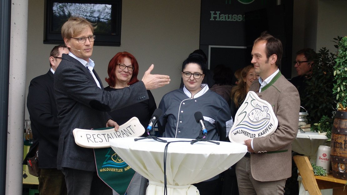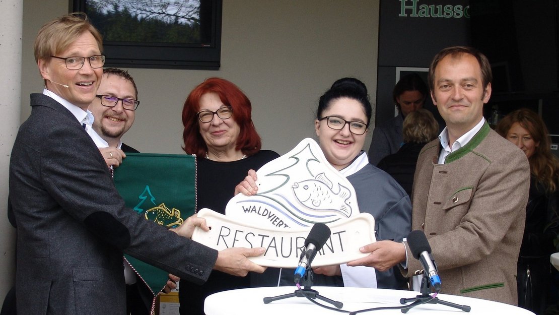 Als sichtbares äußeres Zeichen für den Karpfenwirt-Partnerbetrieb wurde dem Restaurant Hausschachen die bekannte Keramiktafel mit dem Sujet der geschützten Wort-Bild Marke „Waldviertler Karpfen“ verliehen.