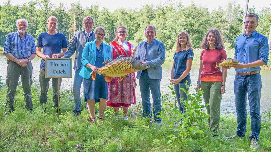 „Das Programm der Teichtaufen durch den NÖ Teichwirteverband dient dazu, neu errichtete Teiche nach außen hin auch sichtbar zu machen und zu zeigen, dass die Karpfenteichwirtschaft auch eine Sparte mit Zukunft ist“, so Obmann-Stellvertreter Andreas Kainz. Je nach Region werden in der Karpfenteichwirtschaft die Teiche auch unterschiedlich benannt, „bei uns in der Region des Waldviertels ist dies vorrangig z.B. eine Besonderheit der umgebenden Flur, ein Bezug zur Ortschaft oder wie in diesem Falle ein Hinweis auf den Errichter des Teiches“ klärt Verbandsgeschäftsführer Kirchmaier über die Flurnamen bei Waldviertler Teichen auf.