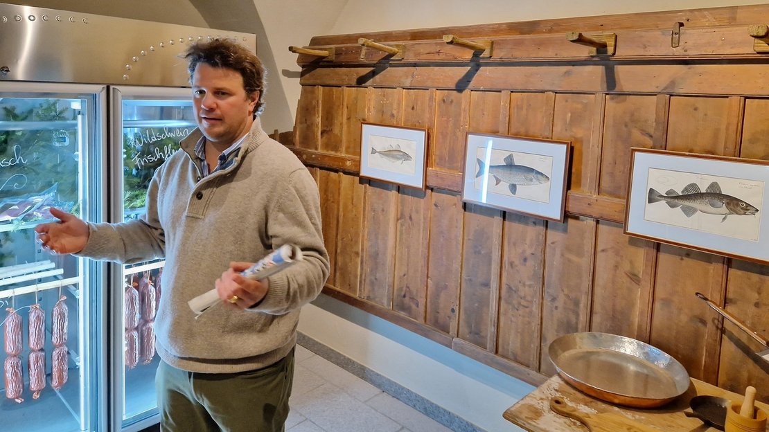 Die im Europäischen Meeres-, Fischerei, und Aquakulturfonds geförderte Weiterbildungsveranstaltung fand ihren würdigen Abschluss bei einer Besichtigung der Produktion von Schloss Litschau durch Schlossherrn Franziskus Seilern-Aspang. Beim Hofladen im Meierhof am Fuße des Schlossberges gab es Einblicke in die Feinheiten der Herstellung von Fisch- und Wildspezialitäten mit anschließender Verkostung der hervorragenden Produkte.