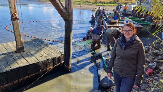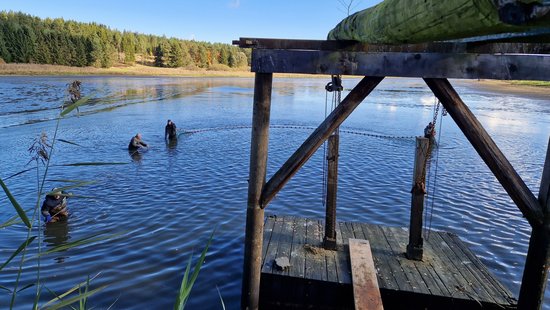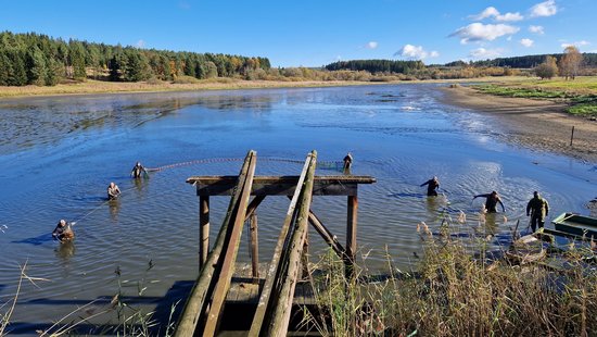 Mit dabei war auch die NÖ Karpfenkönigin Sandra I., die nicht nur für das Produkt Karpfen die Werbetrommel rührte, sondern selbst auch tatkräftig mit Wathose und Kescher bei der Teichabfischung mithalf.