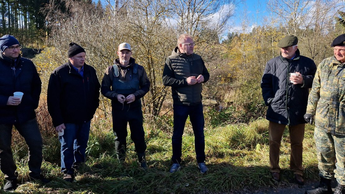 © Leo Kirchmaier/LK NÖ Forstdirektor DI Markus Reichenvater und Vorstandsmitglied Mag. Bernhard Berger (beide Gut Ottenstein) hielten dabei Ansprachen und erläuterten neben dem Abfischvorgang auch die Bedeutung der Teichwirtschaft für das Gut Ottenstein.