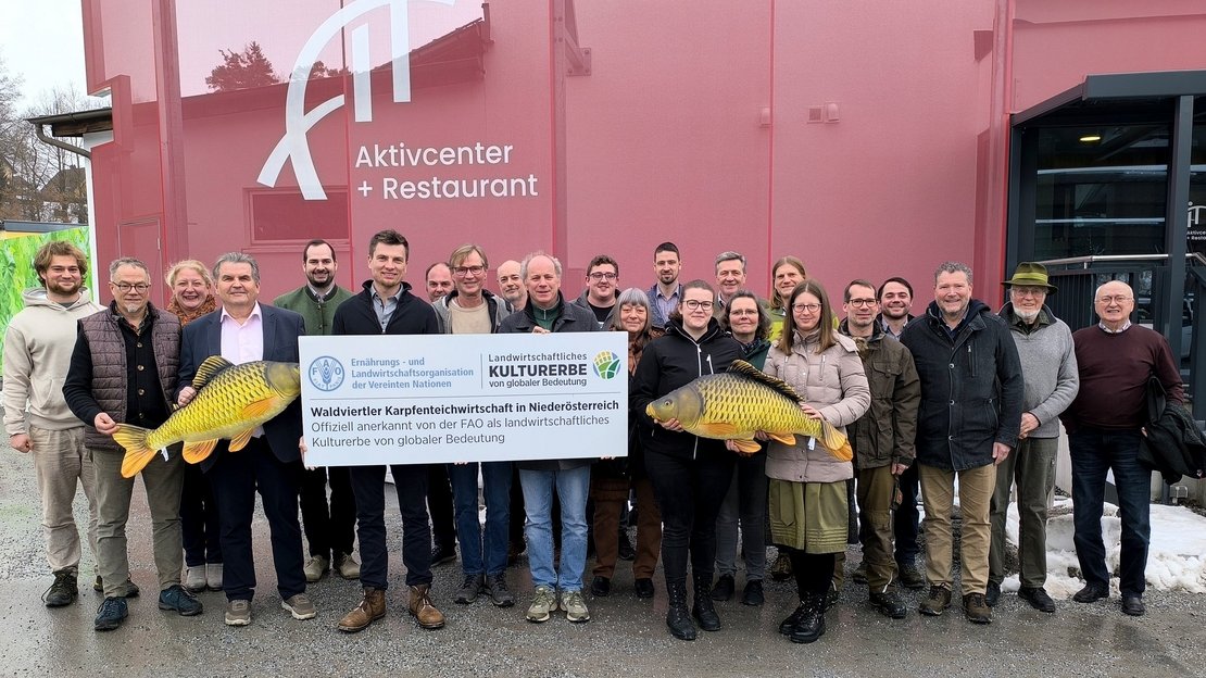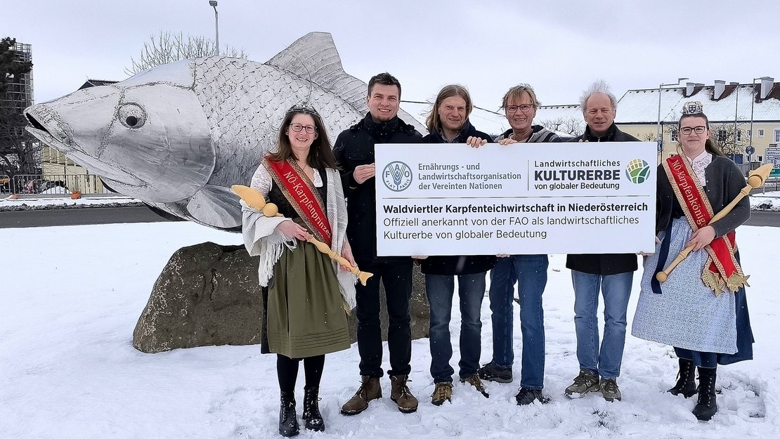 Aufgrund des „Karpfenkreisverkehrs“ bot sich Waidhofen an der Thaya als Sitzungsort ideal an. Im Vorfeld zum Vorstandstreffen wurde die Skulptur durch den Verbandsobmann, den Geschäftsführer, die Produkthoheiten NÖ Karpfenkönigin Michaela I. und NÖ Karpfenprinzessin Theresa I. sowie die Sponsoren der Karpfenfigur, Obmann-Stellvertreter Andreas Kainz und Florian Kainz von der Teichwirtschaft Kainz, besichtigt. Der Karpfen sorgt hier seit Mitte November des Vorjahres in direkter Nähe der Teichwirtschaft Kainz für ein weithin sichtbares Zeichen der Waldviertler Karpfenteichwirtschaft. Der „Karpfenkreisverkehr“ unterstreicht auf sympathische Art und Weise die von der FAO bescheinigte globale Bedeutung als landwirtschaftliches Weltkulturerbe.