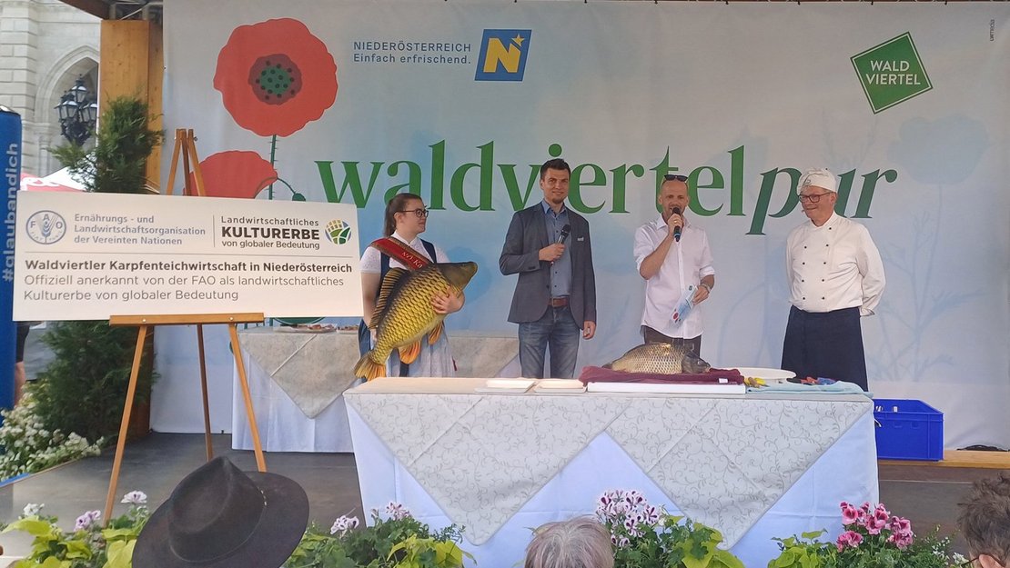 „Diese Auszeichnung zeigt, dass unsere traditionelle Waldviertler Teichwirtschaft nicht nur eine wichtige Rolle für Umwelt und Ernährung spielt, sondern auch ein lebendiges Kulturerbe mit Zukunft ist. Wir freuen uns, die Leistungen der Teiche und vor allem der Menschen die dahinterstehen – die Teichwirtinnen und Teichwirte als Hüter:innen dieses Systems - im Herzen unserer Bundeshauptstadt Wien erlebbar machen zu können“, betonte Geschäftsführer Leo Kirchmaier am Eröffnungstag auf der Festbühne.