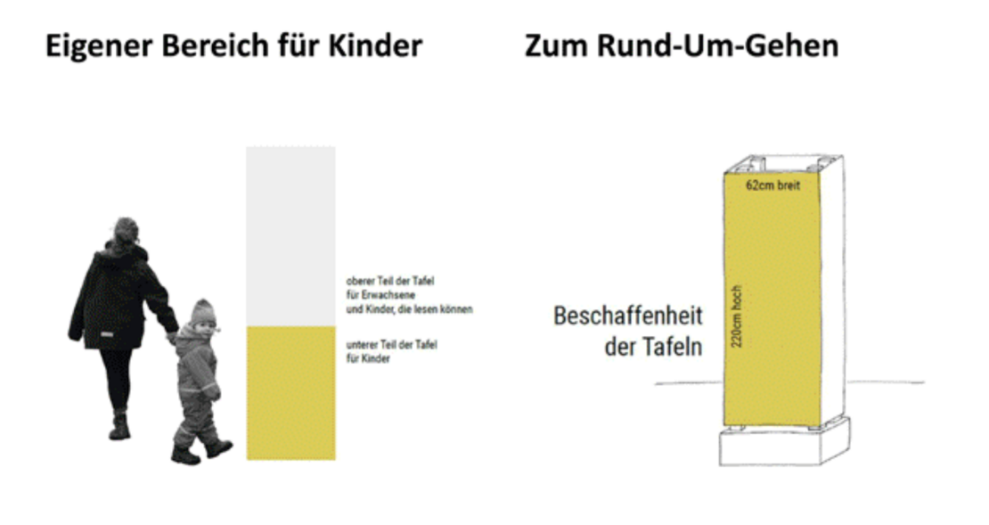 Die Inhalte der Spiel- und Informationstafeln sind fachlich fundiert und sehr ansprechend ausgestaltet. Sie sind sehr innovativ zum Rund-um-Gehen konzipiert. Es gibt drei allgemeine Seiten und eine teichspezifische Seite. Mittels QR-Codes wird ergänzend auch noch auf zusätzliche Fachinformationen (Kochbuch, Kinderbuch) im Web verlinkt. Der untere Lesebereich ist zudem speziell für Kinder gestaltet und beinhaltet auch Spiele für die Kleinsten, denn sie sind die Teichbewahrer*innen und Konsument*innen der Zukunft.