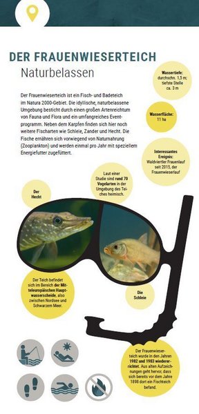 Der Frauenwieserteich ist ein Fisch- und Badeteich im Natura 2000-Gebiet. Die idyllische, naturbelassene Umgebung besticht durch einen großen Artenreichtum von Fauna und Flora und ein umfangreiches Eventprogramm. Neben dem Karpfen finden sich hier noch weitere Fischarten wie Schleie, Zander und Hecht. Die Fische ernähren sich vorwiegend von Naturnahrung (Zooplankton) und werden einmal pro Jahr mit speziellem Energiefutter zugefüttert.