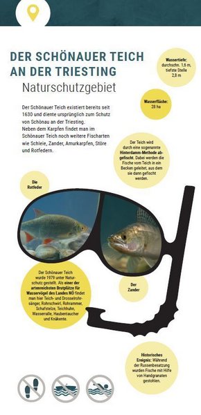 Der Schönauer Teich existiert bereits seit 1630 und diente ursprünglich zum Schutz von Schönau an der Triesting. Neben dem Karpfen findet man im Schönauer Teich noch weitere Fischarten wie Schleie, Zander, Amurkarpfen, Störe und Rotfedern.