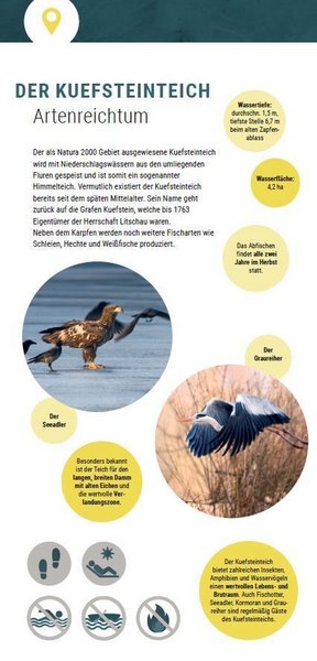 Der als Natura 2000 Gebiet ausgewiesene Kuefsteinteich wird mit Niederschlagswässern aus den umliegenden Fluren gespeist und ist somit ein sogenannter Himmelteich. Vermutlich existiert der Kuefsteinteich bereits seit dem späten Mittelalter. Sein Name geht zurück auf die Grafen Kuefstein, welche bis 1763 Eigentümer der Herrschaft Litschau waren. Neben dem Karpfen werden noch weitere Fischarten wie Schleien, Hechte und Weißfische produziert.
