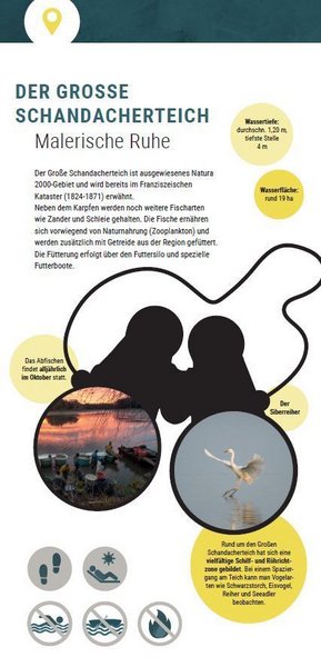 Der Große Schandacherteich ist ausgewiesenes Natura 2000-Gebiet und wird bereits im Franziszeischen Kataster (1824-1871) erwähnt. Neben dem Karpfen werden noch weitere Fischarten wie Zander und Schleie gehalten. Die Fische ernähren sich vorwiegend von Naturnahrung (Zooplankton) und werden zusätzlich mit Getreide aus der Region gefüttert. Die Fütterung erfolgt über den Futtersilo und spezielle Futterboote.