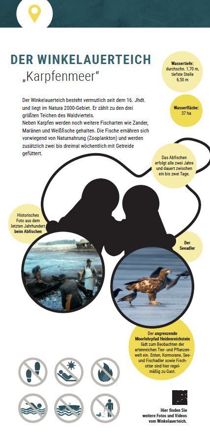 Der Winkelauerteich besteht vermutlich seit dem 16. Jhdt. und liegt im Natura 2000-Gebiet. Er zählt zu den drei größten Teichen des Waldviertels. Neben Karpfen werden noch weitere Fischarten wie Zander, Maränen und Weißfische gehalten. Die Fische ernähren sich vorwiegend von Naturnahrung (Zooplankton) und werden zusätzlich zwei bis dreimal wöchentlich mit Getreide gefüttert.