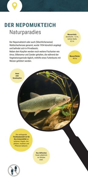 Der Nepomukteich oder auch (fälschlicherweise) Waldschachersee genannt, wurde 1954 künstlich angelegt und befindet sich in Privatbesitz.