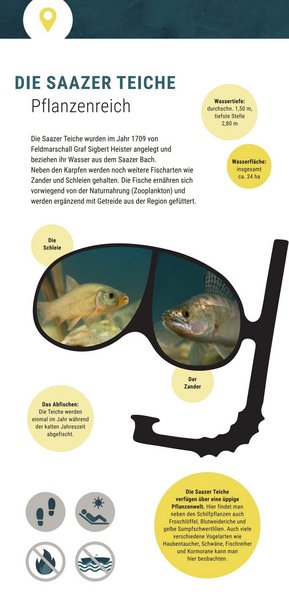 Neben den Karpfen werden noch weitere Fischarten wie Zander und Schleien gehalten. Die Fische ernähren sich vorwiegend von der Naturnahrung (Zooplankton) und werden ergänzend mit Getreide aus der Region gefüttert.