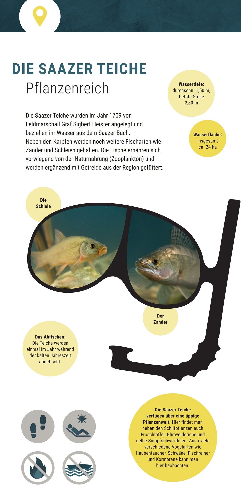 Die Saazer Teiche wurden im Jahr 1709 von Feldmarschall Graf Sigbert Heister angelegt und beziehen ihr Wasser aus dem Saazer Bach.