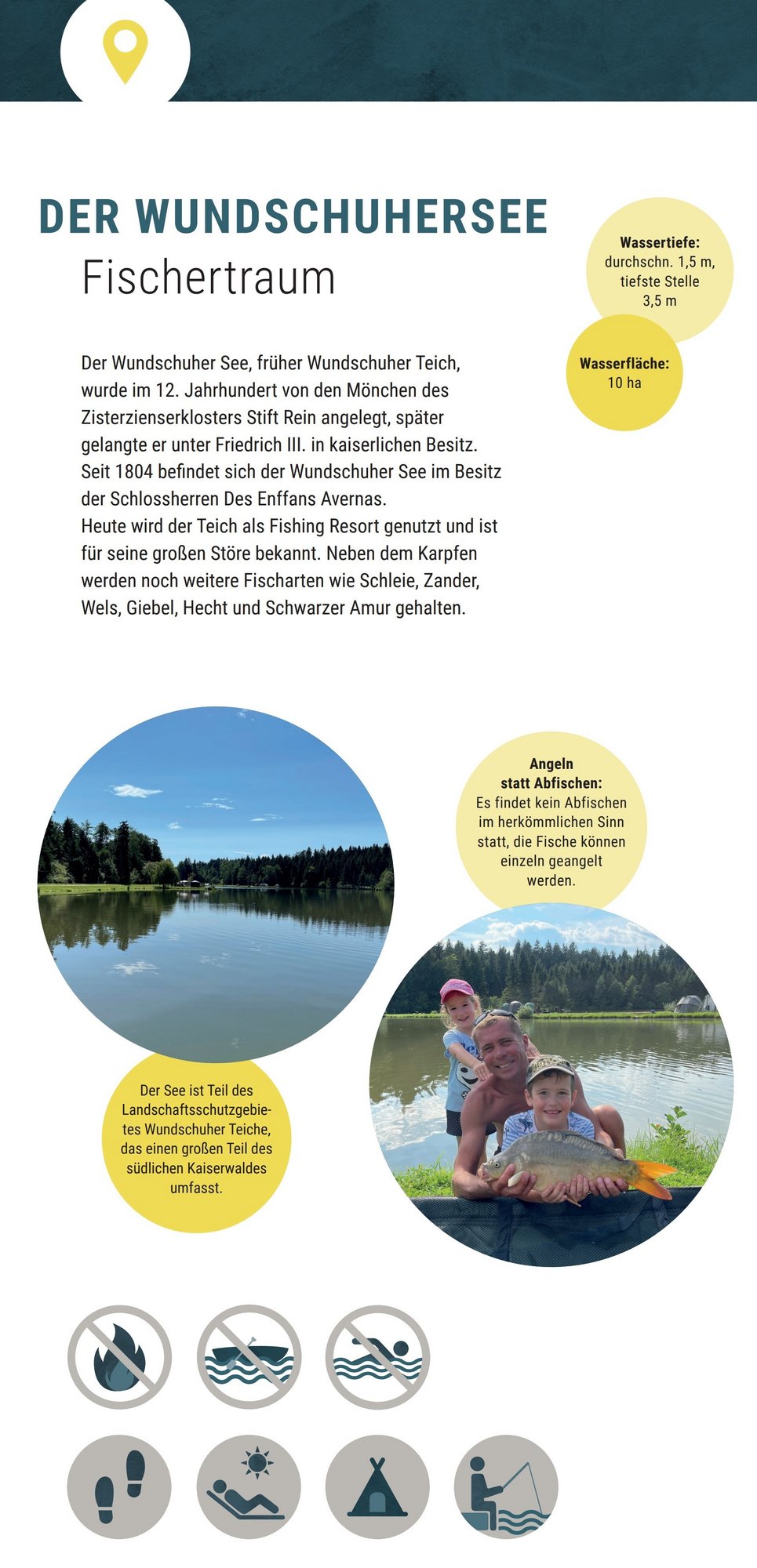 Der Wundschuher See, früher Wundschuher Teich, wurde im 12. Jahrhundert von den Mönchen des Zisterzienserklosters Stift Rein angelegt, später gelangte er unter Friedrich III. in kaiserlichen Besitz. Seit 1804 befindet sich der Wundschuher See im Besitz der Schlossherren Des Enffans Avernas. Heute wird der Teich als Fishing Resort genutzt und ist für seine großen Störe bekannt. Neben dem Karpfen werden noch weitere Fischarten wie Schleie, Zander, Wels, Giebel, Hecht und Schwarzer Amur gehalten.